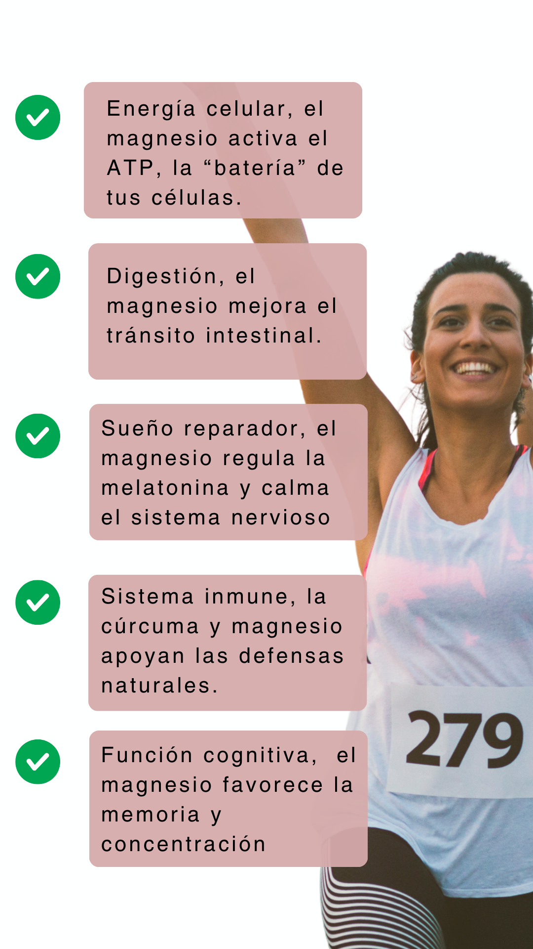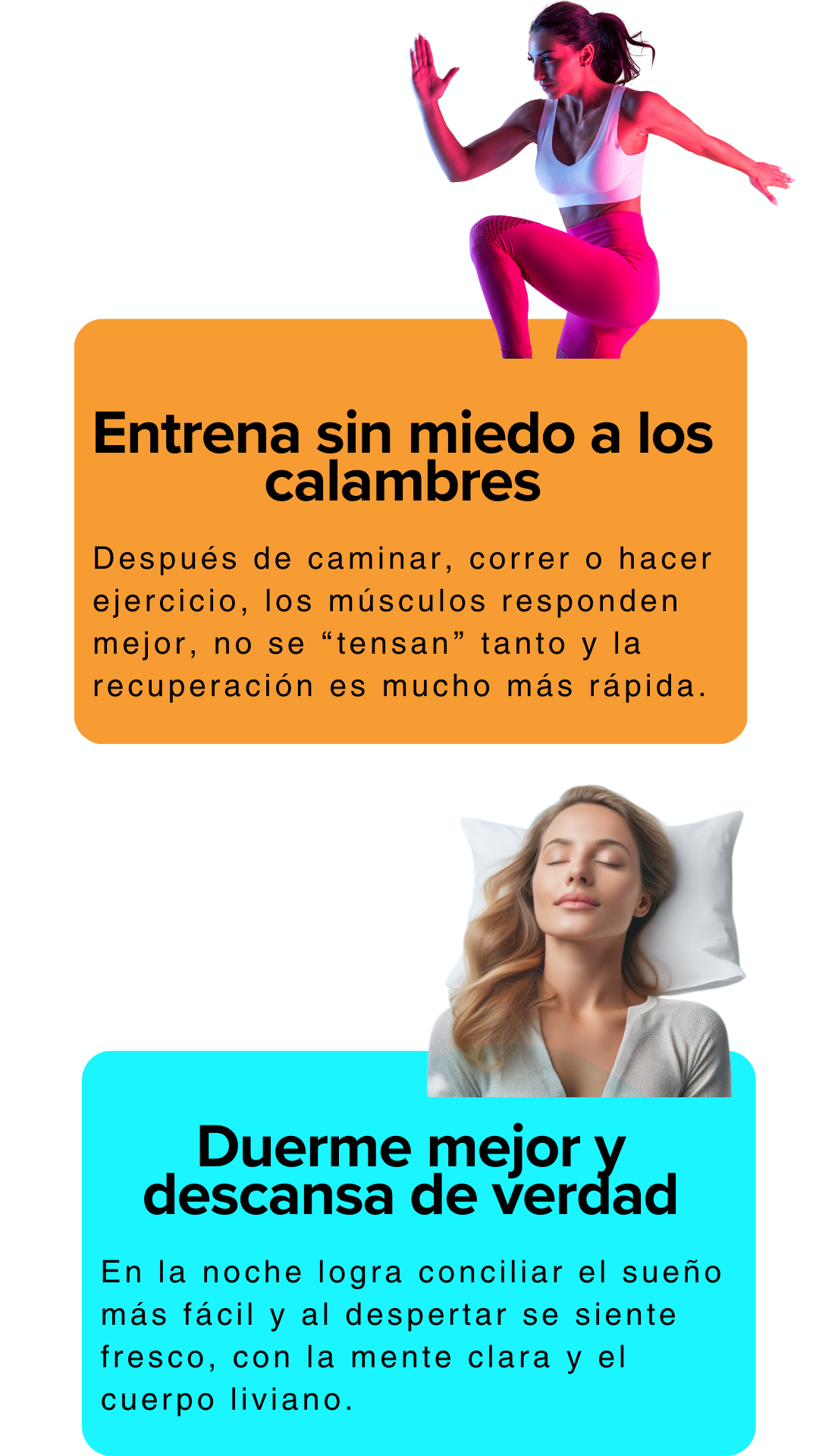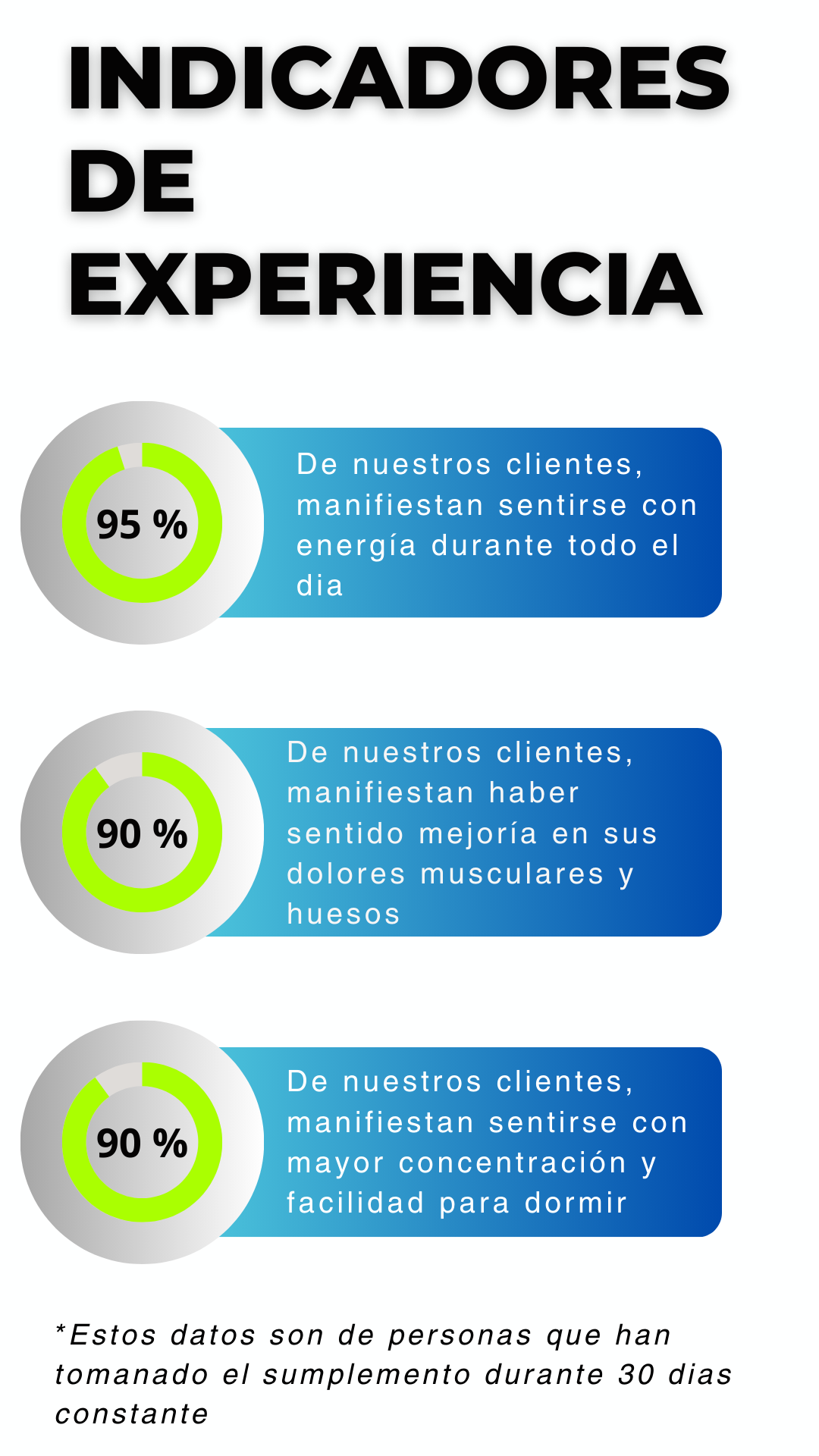 Generalmente, las personas reportan mejoras en su energía y disminución de calambres desde la primera semana, aunque el efecto completo se siente después de 3-4 semanas de uso constante.