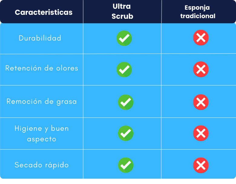 Antes tenía que cambiar esponjas cada semana, pero con UltraScrub llevo meses sin necesidad de reemplazo. Excelente calidad.