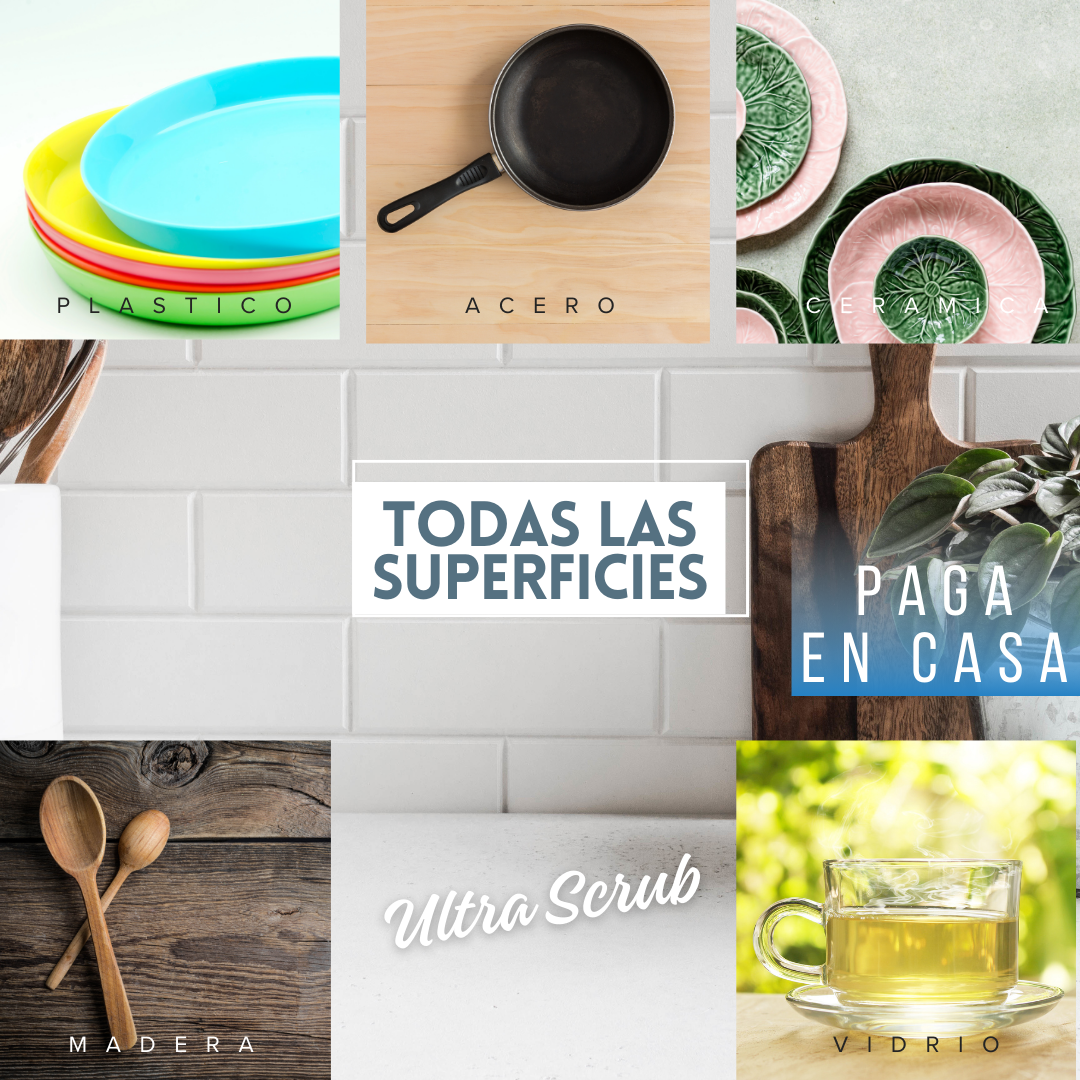Sí, UltraScrub es muy versátil y funciona perfectamente para lavar platos, ollas, encimeras, azulejos e incluso frutas y verduras, facilitando una limpieza rápida y eficiente en toda tu cocina.